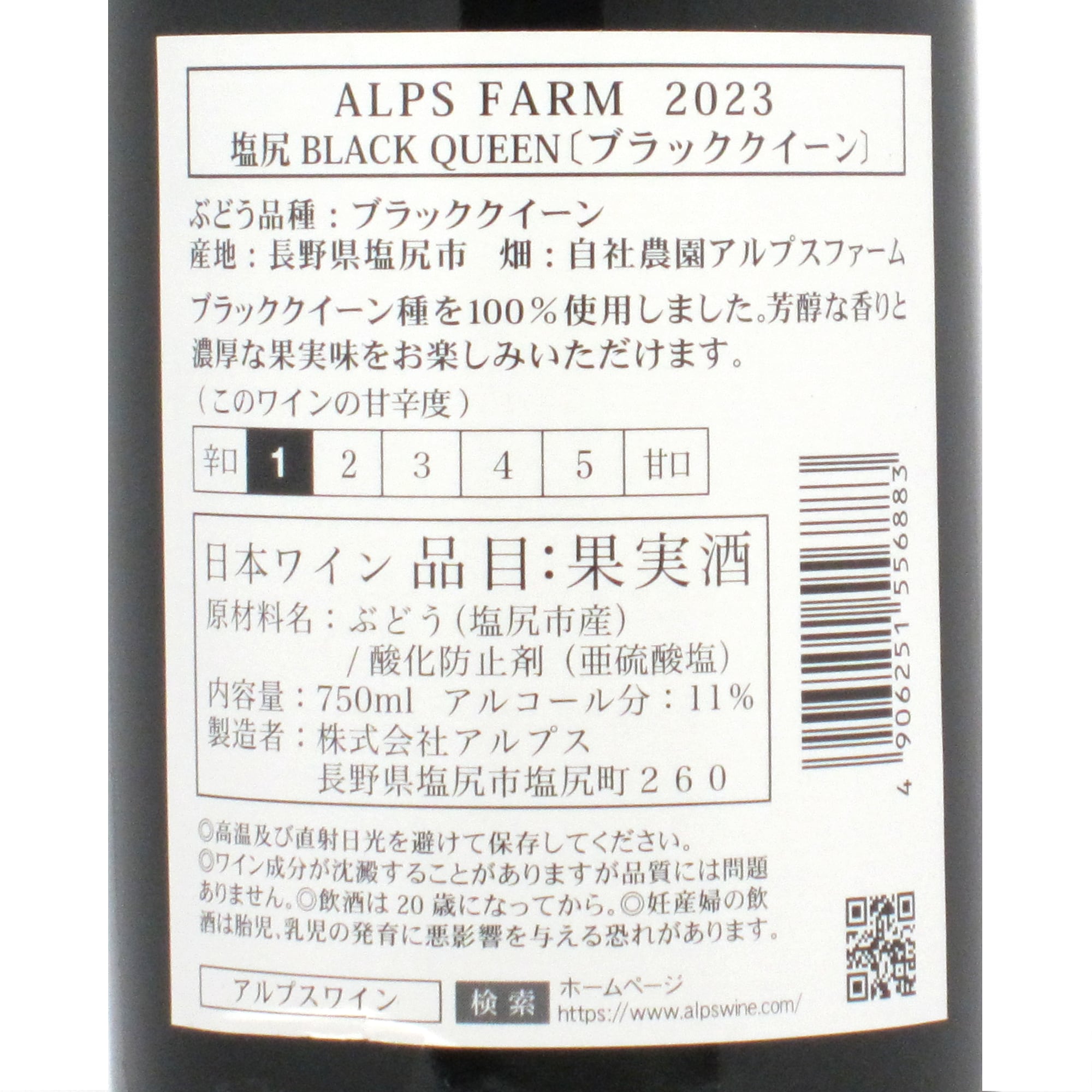長野県塩尻市の自社農園ALPS FARMにて収穫されたブラッククイーン種を使用した赤ワインです。芳醇な香りと濃厚な果実味をお楽しみいただけます。