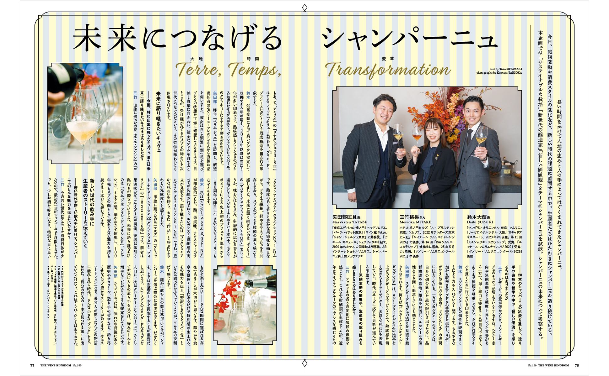 長い時間をかけて大地の恵みと人の手によってはぐくまれてきたシャンパーニュ。今日、気候変動や消費スタイルの変化など、新しい時代の課題に直面するなかで、生産者たちはひたむきにシャンパーニュを造り続けている。本企画では「サステイナブルな栽培」「新時代醸造家」「新しい価値観」に基づくシャンパーニュを試飲。シャンパーニュの未来について考察した。